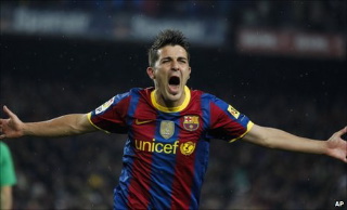 Villa scored Barca’s third and fourth goals, which were created by Messi