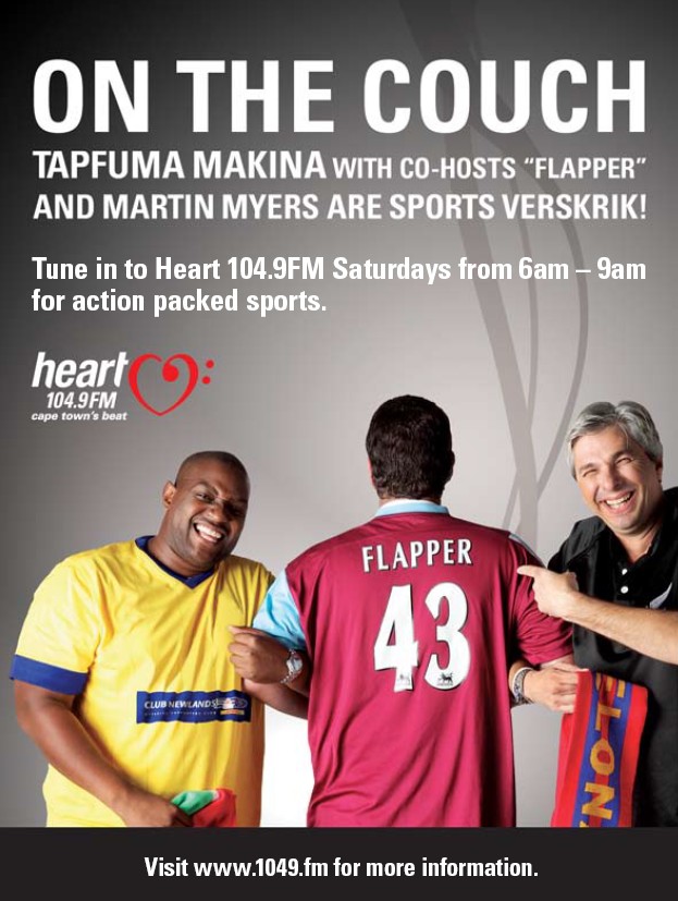 Take Tapfuma Makina and Heart 104.9FM on a Saturday morning. Add Martin Myers and someone known only as Flapper and you have On The Couch, a witty and crazy sports-themed show.