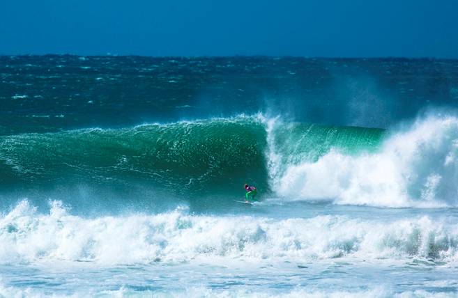 The powerful swell, with a 15 second interval and groomed to perfection by strong offshore winds, is providing a dramatic stage for the competitors, several not yet teenagers, who are posting near perfect scores as they catch the triple-overhead tubular waves and perform massive manoeuvres on the open faces.