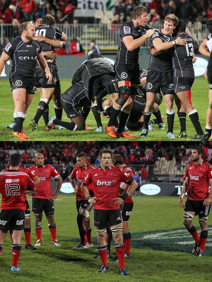 Sharks 30 (Sibusiso Sithole, Cobus Reinach, Lourens Adriaanse tries; Frans Steyn 2 cons, 2 pens, Tim Swiel con, pen) Crusaders 25 (Colin Slade try; con, 6 pens). HT: 10-13