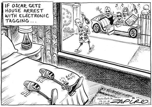 If Oscar gets house arrest – a Zapiro Classic . Discover more from Martin Myers Subscribe to get the latest posts sent to your email. Type your emailโฆ Subscribe Share this: Click to share on Facebook (Opens in new window) Facebook Click to share on X (Opens in new window) X Click to share on WhatsApp (Opens in new window) WhatsApp Click to email a link to a friend (Opens in new window) Email More Click to print (Opens in new window) Print Click to share on Reddit (Opens in new window) Reddit Click to share on Pinterest (Opens in new window) Pinterest Click to share on Tumblr (Opens in new window) Tumblr Click to share on Pocket (Opens in new window) Pocket Like Loading... Related Leave a comment Cancel reply Δ