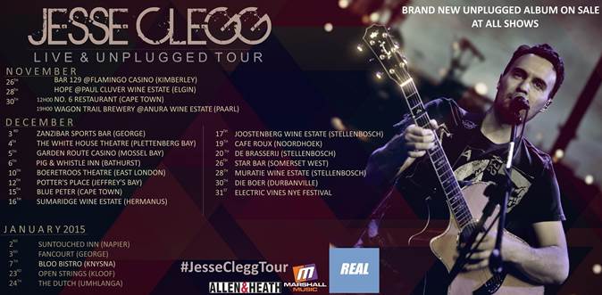 Jesse has completed several successful shows in Gauteng, Mpumalanga and KZN and will be taking his acoustic two-piece show to the Northern Cape, Eastern Cape, Western Cape and Natal over November and December 2014 and into January 2015