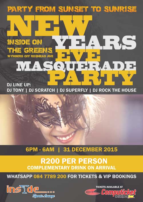 Set your night on fire with our special New Years Eve Masquerade party at Inside on the Greens (off Rosmead Ave).