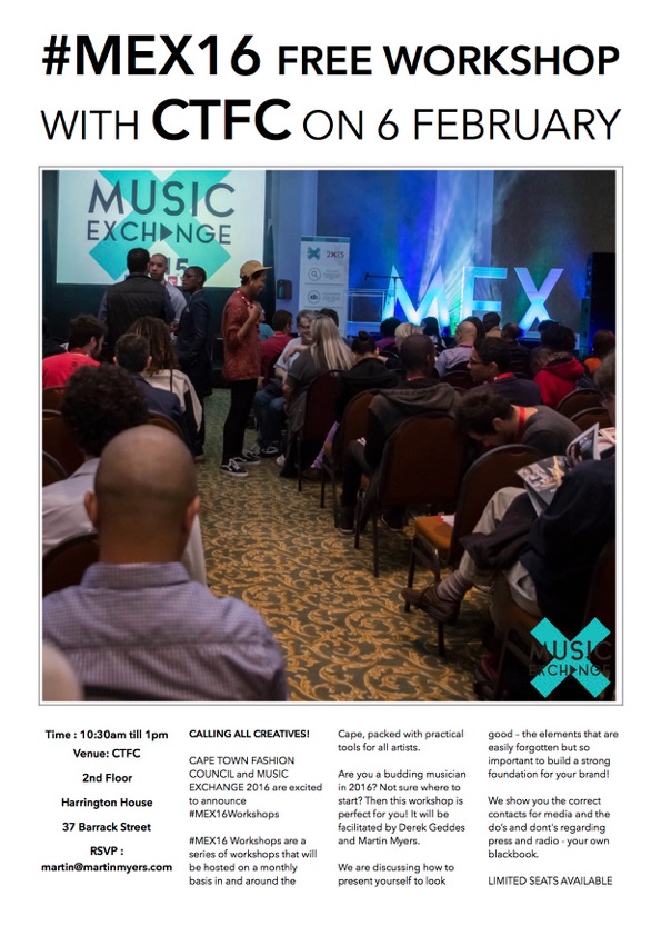 Last chance to book for FREE Music Exchange /Cape Town Fashion Council workshop Saturday 6 Feb Discover more from Martin Myers Subscribe to get the latest posts sent to your email. Type your emailโฆ Subscribe Share this: Click to share on Facebook (Opens in new window) Facebook Click to share on X (Opens in new window) X Click to share on WhatsApp (Opens in new window) WhatsApp Click to email a link to a friend (Opens in new window) Email More Click to print (Opens in new window) Print Click to share on Reddit (Opens in new window) Reddit Click to share on Pinterest (Opens in new window) Pinterest Click to share on Tumblr (Opens in new window) Tumblr Click to share on Pocket (Opens in new window) Pocket Like Loading... Related Leave a comment Cancel reply Δ