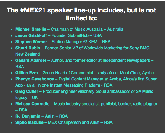 Also bring a memory stick to get all the MEX21 talks as listed below for you to listen to -Over 11 hours of great content including Ayoba me and what it can do for you