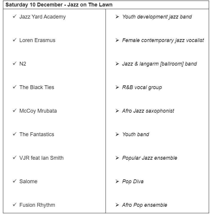 If you are heading to Cape Town this December, then be sure to catch one of city’s most vibrant jazz festivals, Jazz on the Lawn Weekender over two days, 10-11 December 2022.
