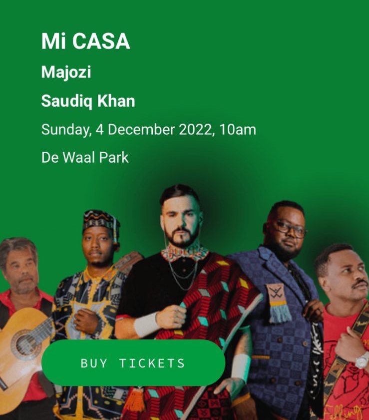 A snap shot photo gallery regarding De Waal Park on 4 December with Mi Casa, Majozi. The sold out sign went up for the day and the next event is on 18th Dec with Francois van Coke and more.