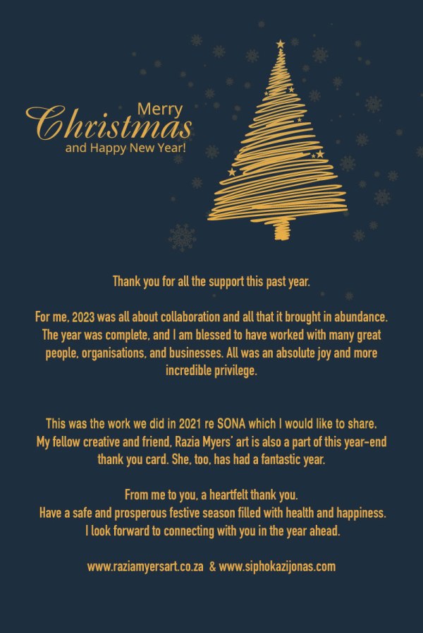 Happy Holidays from Siphokazi Jonas and a Happy New Year, and all the best for 2024