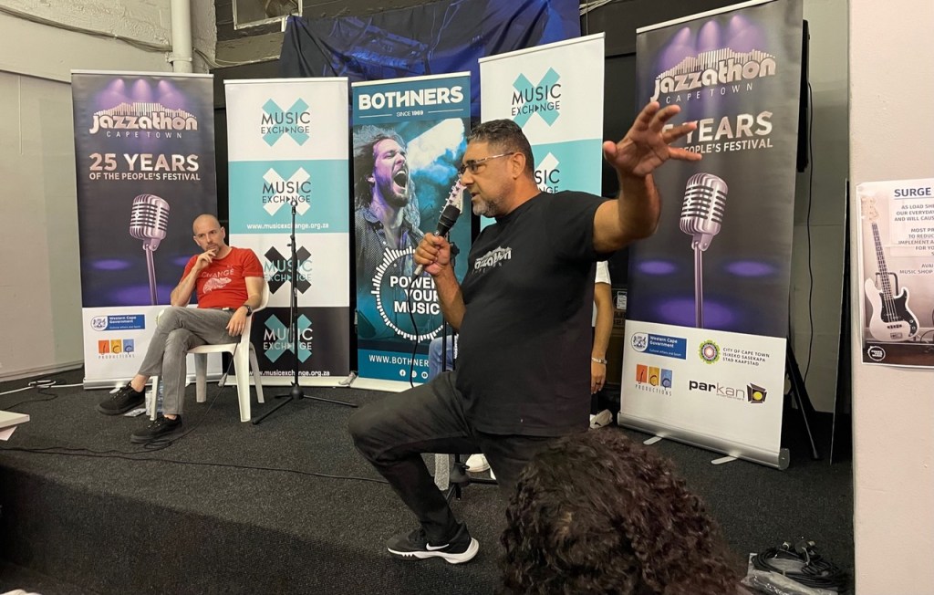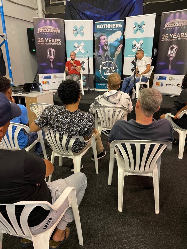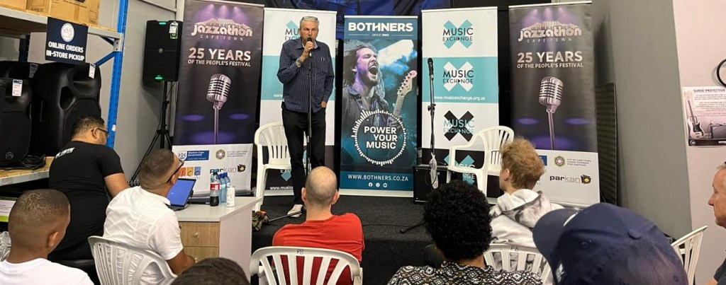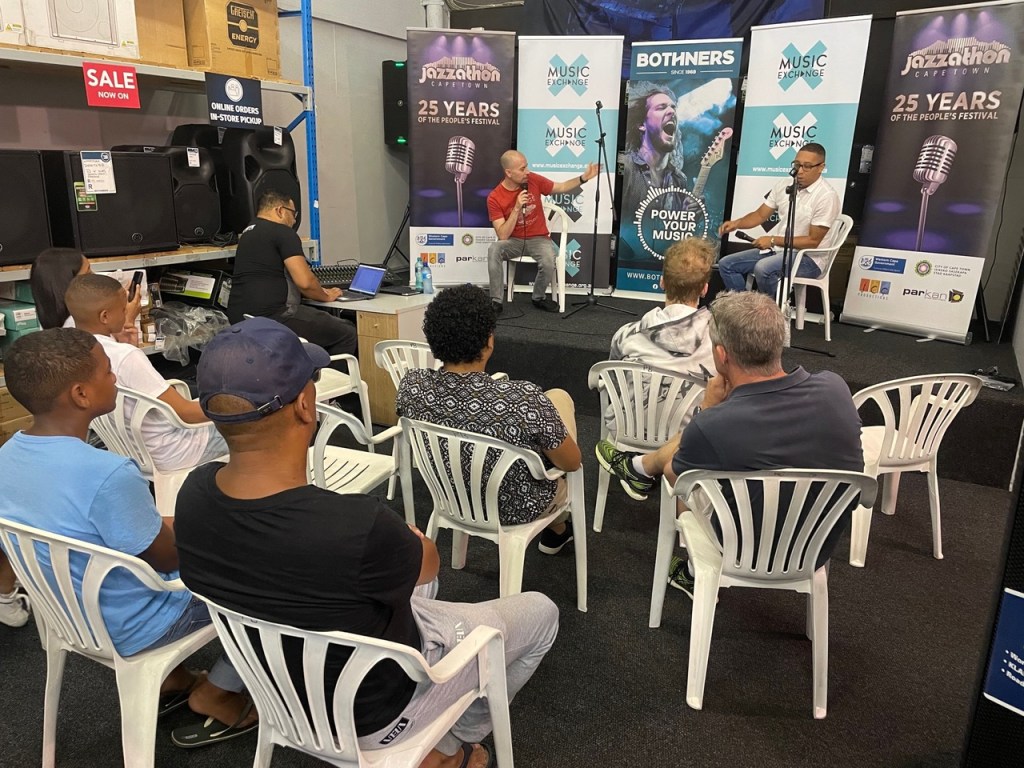 RJ opened up as to how he got Cameron to feature on the new work YONELA coming out later this month, and the process involved as well as splits and the paperwork needed to achieve success. As singer songwriter Andy Hoyle – mentioned in a note post event – such good info and so much to learn, from creatives at the top of their game. Nice to see Dylan Red who is working with RJ whilst he is in Cape Town seek out more knowledge. Craig Parks from Jazzathon and Martin Myers facilitated the morning. Jerome the store manager of the Claremont branch was overjoyed with the turnout and engagement. Enjoy the pics of the morning.