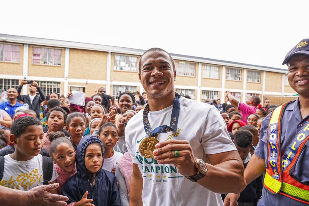 Pictured above is Cheslin’s on his recent visit to his home town of Kraaifontein, which was supported by Investec Strategic Philanthropy