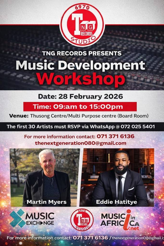 Beaufort West, South Africa — 28 February 2026 — TNG Records is proud to present the Music Development Workshop 2026, a dynamic, one-day industry experience designed to empower artists, producers, and music entrepreneurs with practical knowledge, meaningful connections, and forward-thinking insight.