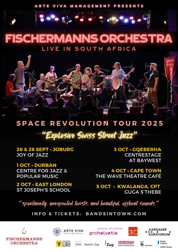 Swiss jazz ensemble Fischermanns Orchestra is set to perform in South Africa from September 26 to October 5, 2025, featuring their unique blend of street jazz. Kicking off at the Joy of Jazz festival in Johannesburg, they will also take the stage in Durban, East London, Gqeberha, and Cape Town, promising exhilarating performances.