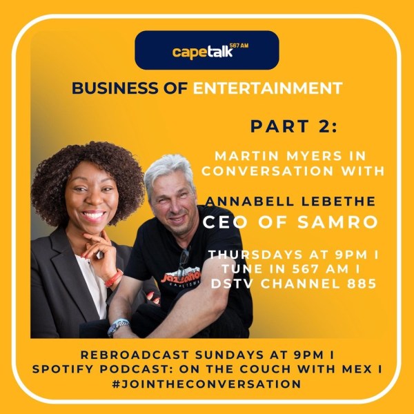 The Business of Entertainment, hosted by Martin Myers on CapeTalk, engages listeners with insights from notable figures in entertainment, inspiring creatives with actionable advice.